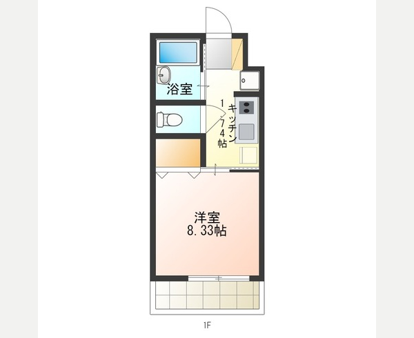 | 専有面積 | 23.13m²/7.01坪 | 間取り | 1K 洋室8.33帖 |