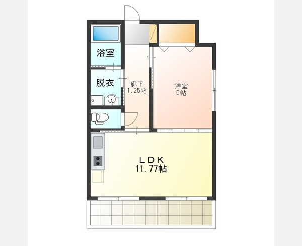 | 専有面積 | 38.46m²/11.65坪 | 間取り | 1LDK 洋室5帖 K12帖 |